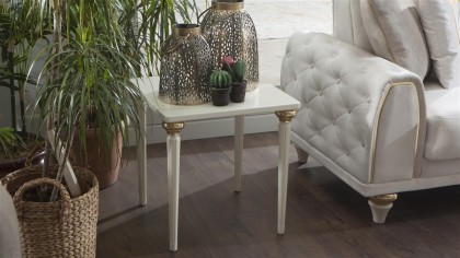 Masuta Cafea de colt Victor, 50x50x58.5cm, culoare Fildes, Finisaj Auriu