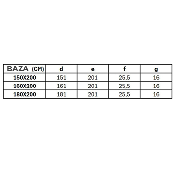 Patul este disponibil în varianta cu ladă de depozitare pentru spațiu suplimentar. Tăblia este tapițată și decorată cu cusături matlasate. Sistemul LED încorporat oferă lumină ambientală, iar în partea superioară se regăsește un detaliu metalic auriu elegant.