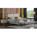 Noptierele și comoda sunt dotate cu sertare cu glisare lină pe șine ascunse și mânere aurii minimaliste, integrate discret în ansamblul estetic. Aceste piese adaugă un plus de funcționalitate, fără a compromite aspectul elegant.